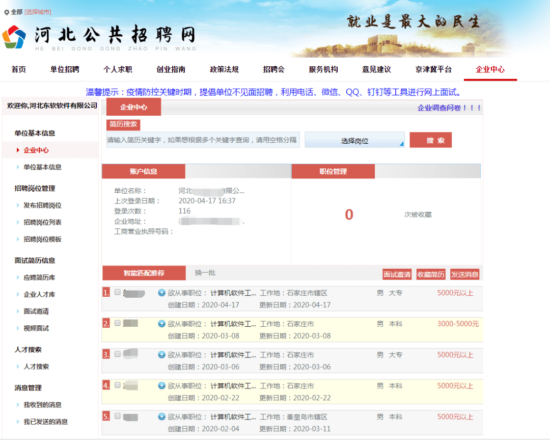 访问河北搜才网首页