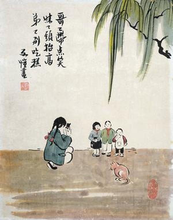 在这幅作品中,丰子恺以他独特的简洁线条和生动的色彩,描绘了一幅充满生机与活力的山水景色,画中的大自然山峦叠嶂,水流潺潺,绿树成荫,鸟语花香,仅仅看着这幅画,便能感受到大自然的呼吸和声音,仿佛置身于其中。